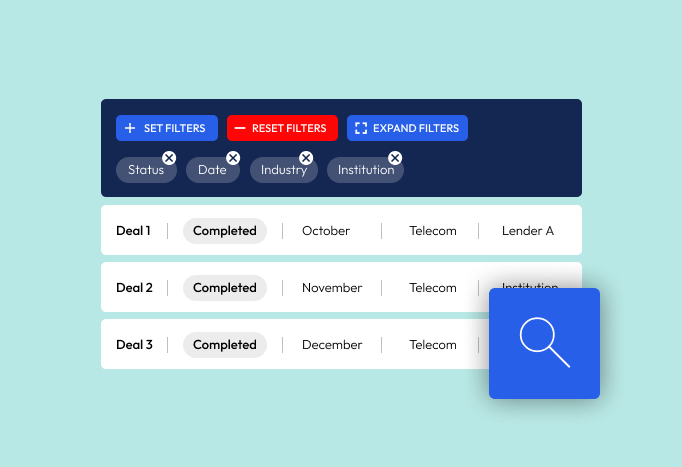 Join the platform relied on by debt advisory leaders to coordinate stakeholders, launch deals seamlessly, and manage transactions with precision.