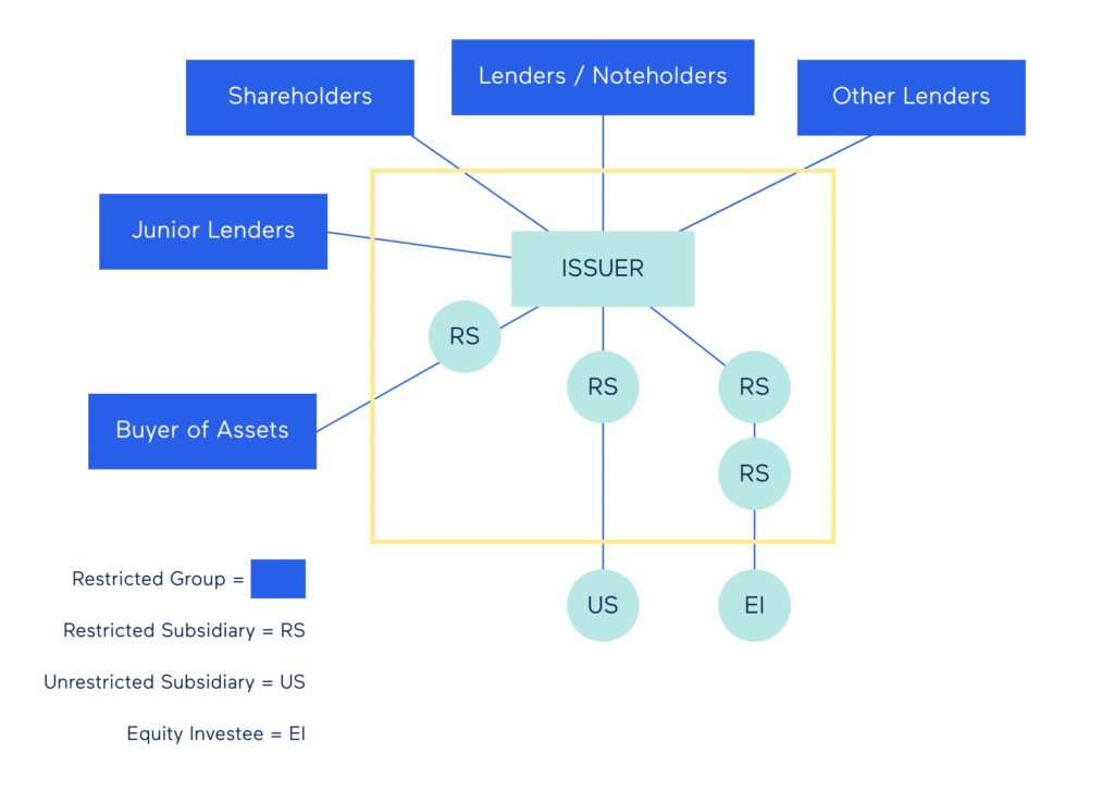 The Restricted Group is the subsidiaries, legal persons that are owned and / or controlled by the issuer of the debt claim in a way that the issuer of the debt claim can control the financial policy, management or operations of that entity.